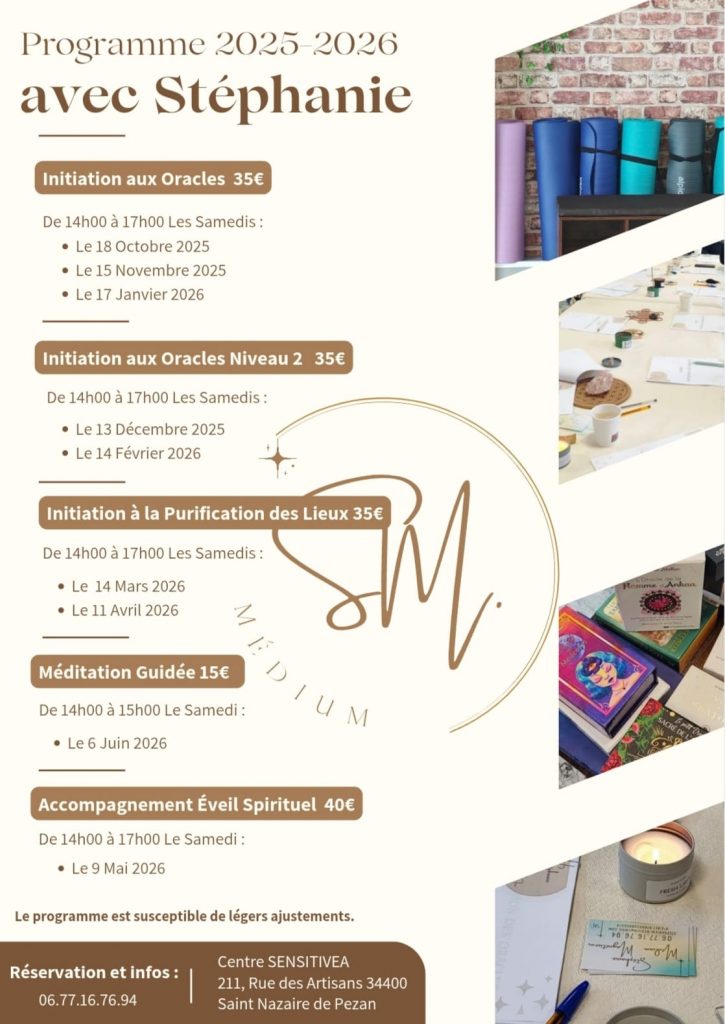 RENSEIGNEMENTS ET INSCRIPTIONS / CENTRE SENSITIVEA : 07 82 85 67 78